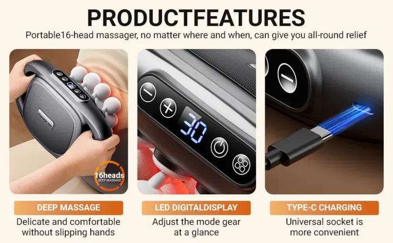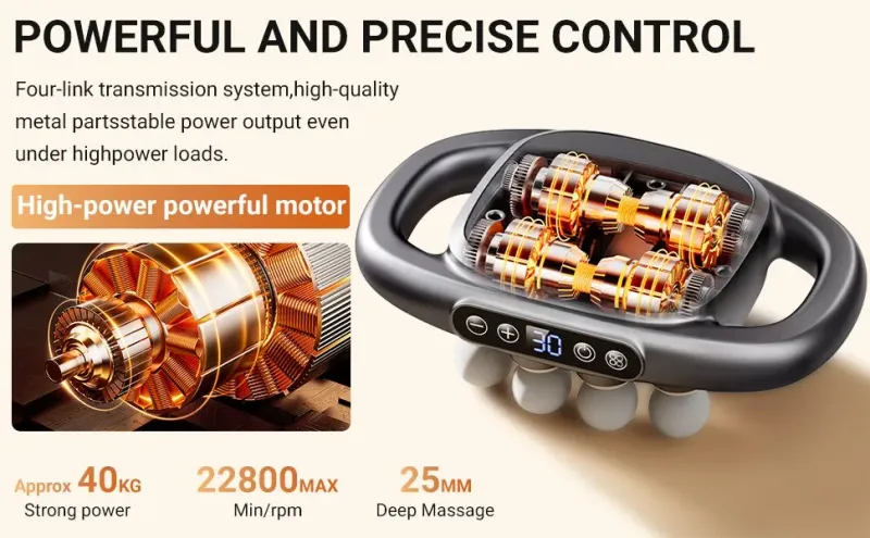 بفضل المحرك عالي العزم 💪، يقدم مسدس المساج اهتزازات بعمق 25 مم لاختراق العضلات المتصلبة، تخفيف الألم وتقليل التوتر. مثالي بعد التمرين 🏋️ أو للاسترخاء اليومي 🧘.